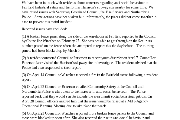 Bill Quay Fire: Statement from Pelaw and Heworth Ward Councillors